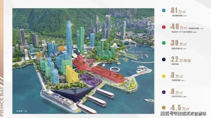 太子湾片区立意“一湾繁华,共享盛世”,以22万吨级邮轮母港为依托,构筑国际高端“居住坊”、“商业坊”、“邮轮坊”,配合超甲级写字楼、邮轮中心、国际学校、国际医院、文化艺术等全方位城市综合配套,成就高端元素集萃纷呈的“城中之城”