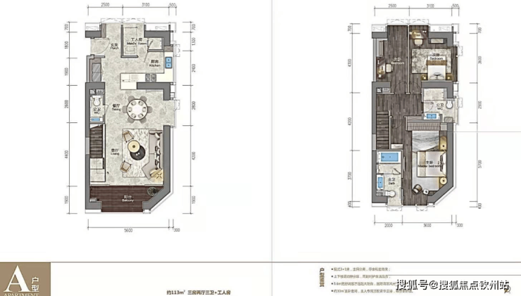 ★113㎡复式三房两厅三卫+工人房 南北通透三面景观,5.6米客厅与主卧开间,独具品位,尽享奢阔。