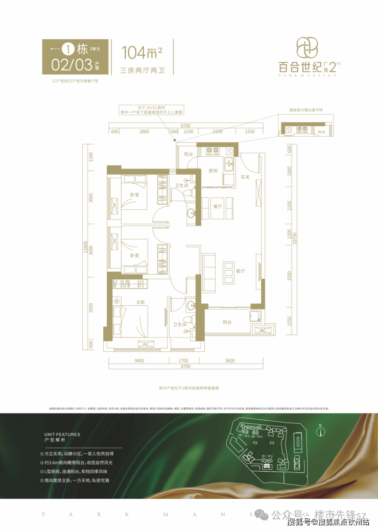 这次准备推售百合世纪广场二期(B-02地块),总占地面积约3.6万㎡,总建筑面积约27.03万㎡,容积率5.38,绿化率40%,共由3栋7个单元组成,总高是31-48层的住宅,其中1栋1单元住宅42F,1栋2单元住宅47F,2栋1单元住宅46F,2栋4/5单元住宅48F,3栋1/2单元住宅31F,另外2栋2单元公寓30F,2栋3单元商务办公楼22F,4栋是1所九班制幼儿园。总规划住宅1093户,地下室有3层,规划停车位1389个,其中带充电桩车位417个,车位比约1:1.27。