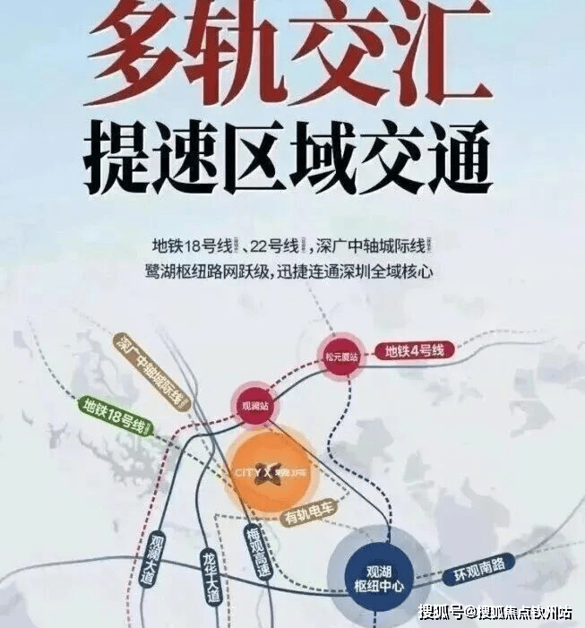 交通配套:地铁 4 号线延长线观澜站距离鸿荣源观城约 400 米,10 站可到达深圳北站,16 站到福田 CBD。有轨电车新澜站距离项目约 500 米。此外,规划中的地铁 18、22 号线也将经过该区域,其中 22 号线鹭湖站在建,未来交通将更加便捷。