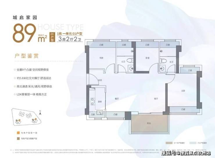 【约89平3房2厅2卫-横厅】
