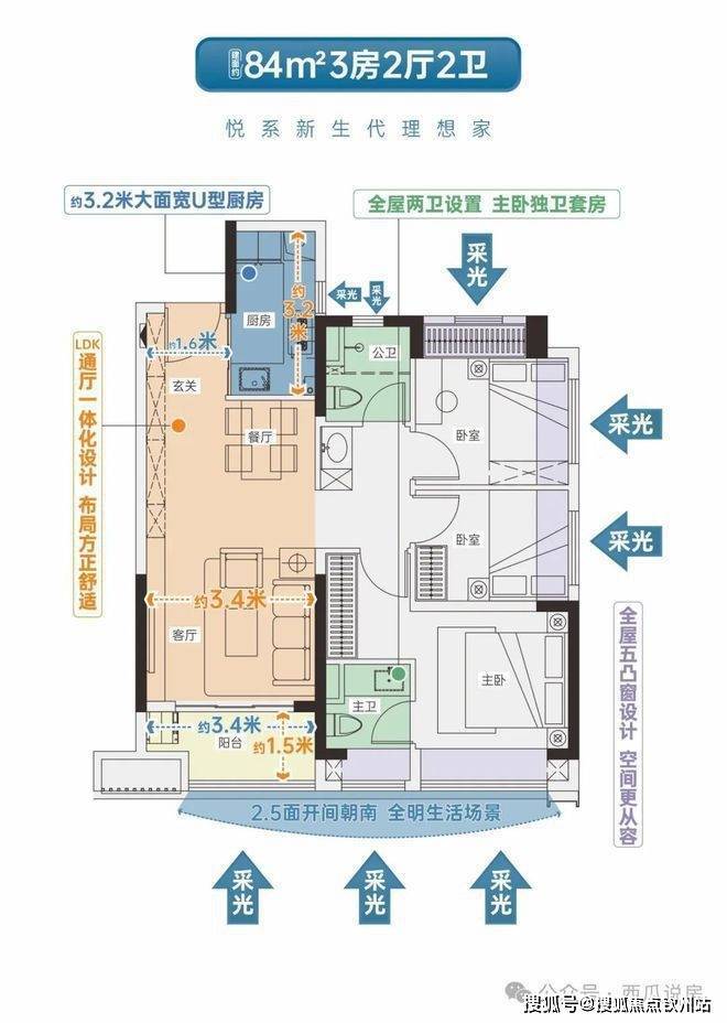•LDK通厅设计,双开间超6米宽景阳台