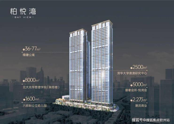 恒裕柏悦湾项目总建筑面积37万平,是集公寓、办公、幼儿园、约2.2万平商业、约5000平精英会所、约8000平北大光华管理学院、约2500平清华大学港澳研究中心等多元规划于一体的超级综合体。