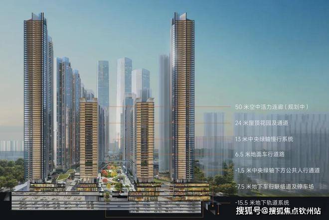 创新打造地上地下七重结构立体化交通系统,不同交通系统分层互联,人行系统、城市公共道路系统、地下轨交系统快速接驳,最大程度实现人车分流,科学化疏解交通压力。