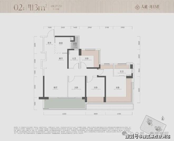 对比之前的113平户型,生生多了个房间,而且主卧尺度很大,开间和进深都超过了4米,双面采光,主卧进门独立衣帽间,具备一个次卧打通做大客厅的能力,新规户型优势很明显!