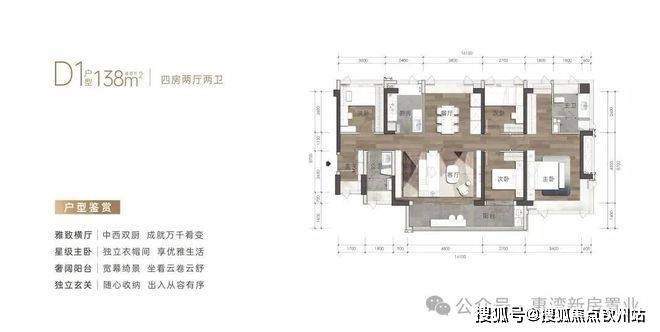 户型方面,臻藏级南向湾海视野,LDKB人性化动线设计,格局方正、高实用率,打造独立玄关、双飘窗主卧、步入式衣帽间等个性化空间。