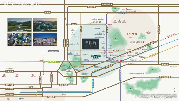 项目紧邻地铁16号线龙城公园站(约600米),2站直达大运枢纽,可换乘3号线、14 号线,快速通达福田、罗湖等核心区。
