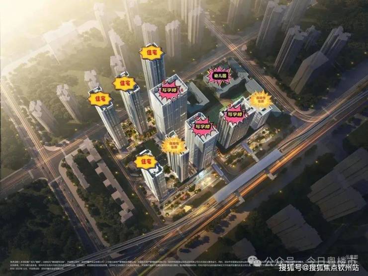 项目由4栋45F超高层住宅、3栋40F、30F写字楼、1栋45F保障房、1栋3F幼儿园以及一所九年制学校组成,未来将建设成为集住宅。