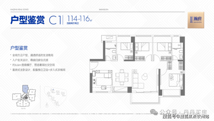114-116㎡四房两厅两卫:折后总价427万-472万。凭借约6.6米横厅、套房式主卧(独立卫浴+衣帽间)设计,满足多代同堂或二胎家庭的空间升级诉求;
