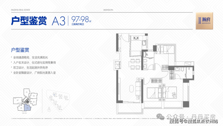 亮点:全明格局+三开间朝南,采光充足;入户玄关增强仪式感;双卫设计避免使用冲突;全卧室飘窗拓展空间。