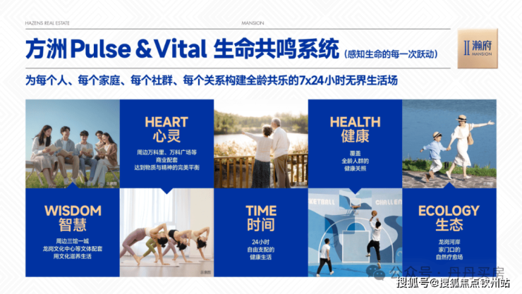 特别值得一提的是社区的"Pulse&Vital生命共鸣系统",这个系统从心灵、健康、智慧、时间、生态五个维度构建社区生活体系,体现了对现代都市生活需求的深入理解。