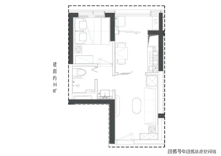 44㎡1房,总价:280-300万,单价6.3-6.8万;