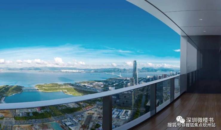 约11米公寓挑高大堂,约2.45米幕墙玻璃宽幅,约23米观海面宽,3.6米层高。