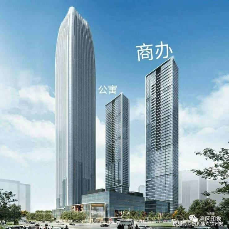 三栋超高层建筑以及下沉式商业组成,其中写字楼高度约310m,公寓高度约255m,是集超甲级写字楼,顶级公寓,都会商业等业态于一体的超级湾区的世界藏品。