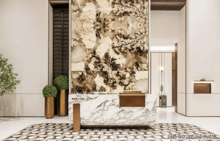 墙面铺贴米白色大理石,点缀以金属线条,简约质感中又有硬朗的提亮元素,背景墙面星级酒店才会用的潘多拉石材,多种稀贵材质,组合得恰到好处,在空间艺术的审美上,已经不是一般品质盘能有的段位。