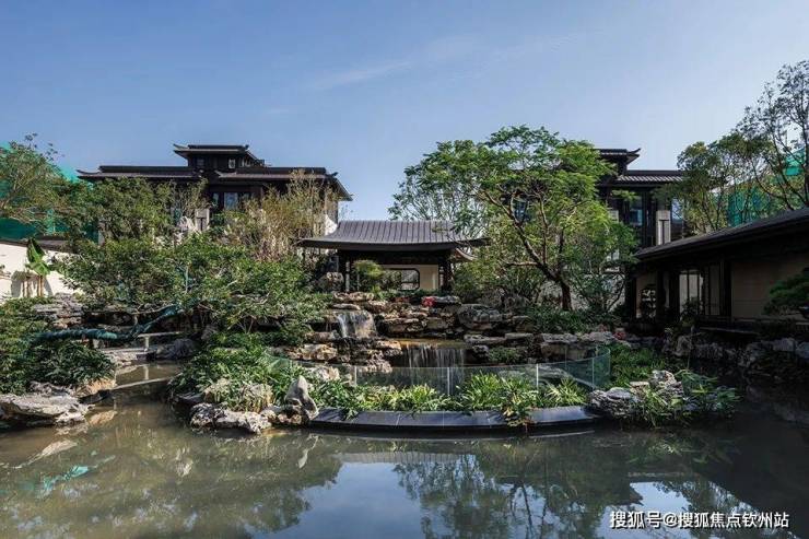 以此为源,为了突出这种归家的仪式感,在“青溪行”这条中轴线上,华发院子营造了“入溪”“随山”“松礼”“泛菱”“心闲”“石上”等各式体验的“六进”院落。在每一处打造出一个个具有岭南特色而又博采各地文化元素的景致空间,比如高门垂脊构成了“入溪”,奇石叠水构成了“随山”,山石、水池、花木等景观相映成趣。