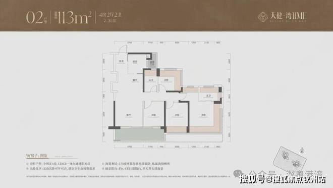 「天健湾时代府」会做两栋不超过100米的高层,住宅面积段为113-139㎡,四房起步。