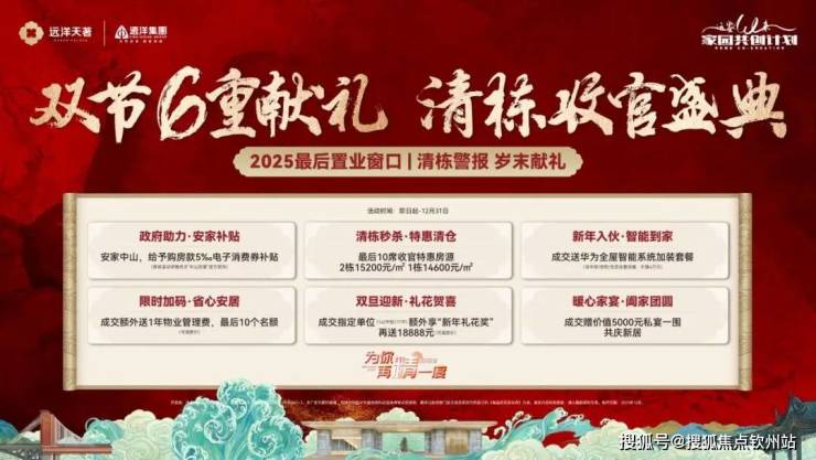 岁末将至,回馈升级!远洋天著二期钜惠火热来袭,买房真福利、购房真优惠、安家真补贴,以满满诚意助您安家中山,即日起,双节臻礼6重奏,火热开启!