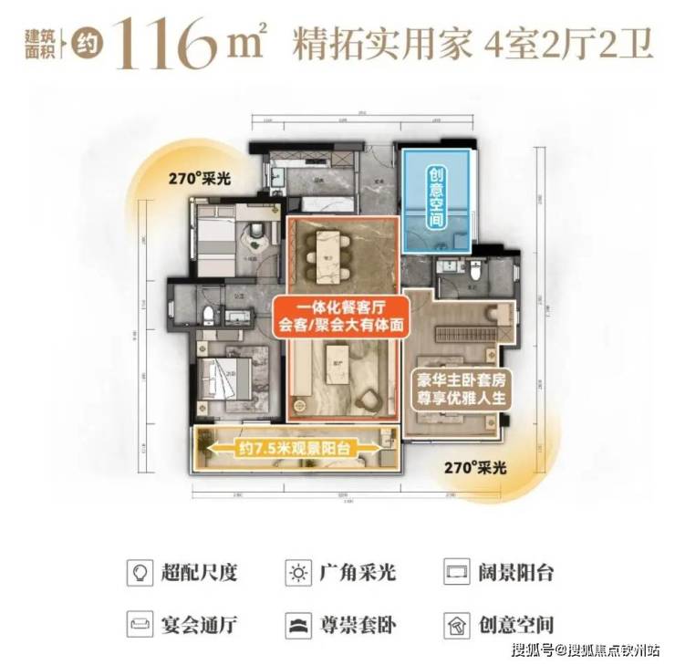 约130%使用率,户户【3+X】创意空间,南北对流,270°采光,大尺度阳台,演绎奢适日常;
